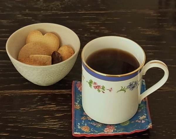 喫茶を何度かご利用いただいたお客様から、「大きいカップでコーヒーを飲みたいなぁ」とのリクエストがありまして、マグカップをご用意しました。だいたい通常のコーヒーカップの2杯分よりやや少なめの量で、580円です。