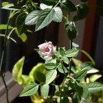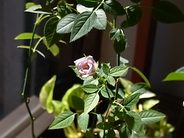 またまたミニバラが咲いてくれました。今年は、春・夏、そして今と3回目。開店の時や1周年などでいくつかミニバラをもらいましたが、残ったのはこの1株。緑の指を持っていない私は、何がよくて何がだめだったのかわからないまま水遣りをしているだけなので、こうして花が咲いてくれると、すっごくうれしい。ほんとに小さな花ですけど。