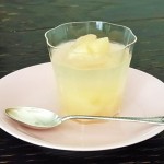 先陣をきるのは「桃ゼリー」。旬の桃をコンポートにして、ひんやりさっぱりゼリーにしました。コンポートはシロップで果物を煮たものですが、当店のものは白ワインの入っているレシピで、ふんわりほのかにぶどうが香ります。(煮ているので、アルコールは飛んでいます)終了しました。