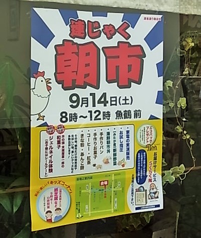 連じゃく朝市 9/14(土)8:00~12:00 「魚鶴」前 終了しました