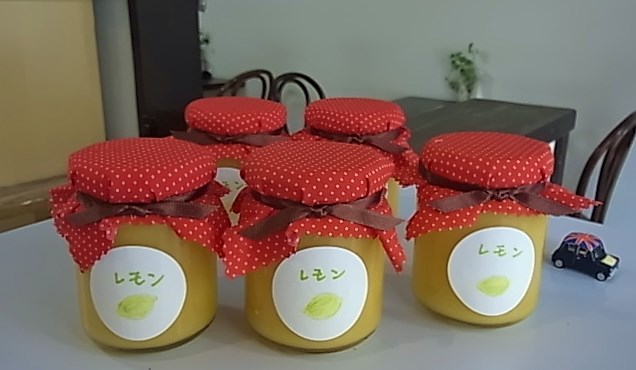 キルトをされるお客さまがジャムのパッケージ用に端切れをよくくださるのですが、先日いただいた中でレモンカードにぴったりのがありました。さっそく使ってみるとイメージ通り、かわいい!せっかく写真を撮ったので、一応載せておきます。まさか、こんなにすぐに売れてしまうとは思わず・・・。