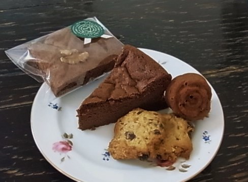チーズケーキ、スコーン(プレーン、豆乳、米ぬか)、ショートブレッド、チョコクッキー(プレーン、アーモンド)。