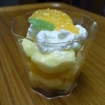 トライフル(フルーツ、カスタードクリーム、スポンジケーキ、生クリームを重ねた、英国風ミニパフェ)350円